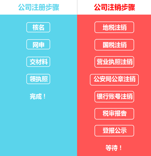 首先,通過上面的對比圖,注銷公司的客觀流程比較繁瑣,如果注銷順利,則是按照正常流程進行,如果遇到一些其他問題,可能會有小插曲。
